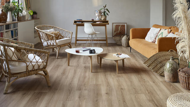 Praktické řešení v rolích, které Tarkett nabízí v desítkách moderních dekorů (řada ICONIK). Jsou měkké, hřejivé a beze spojů.